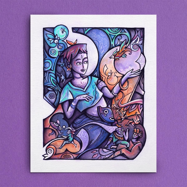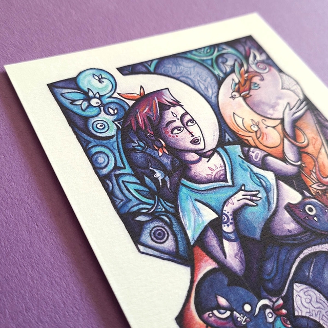 Mini print format carte postale du dessin, L'Aurore des Illusions, réalisé en 2024.
